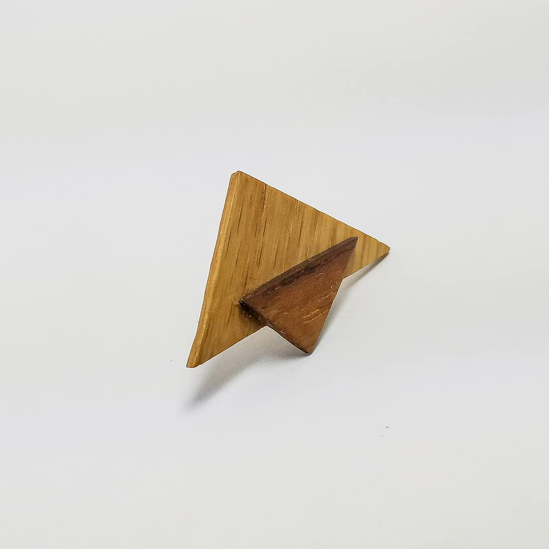 Σκουλαρίκι κουμπωτό σε σχήμα σαν Καραβάκι. Από ξύλο Δρυός και Ιρόκο. Φινιρισμένο με έλαια.