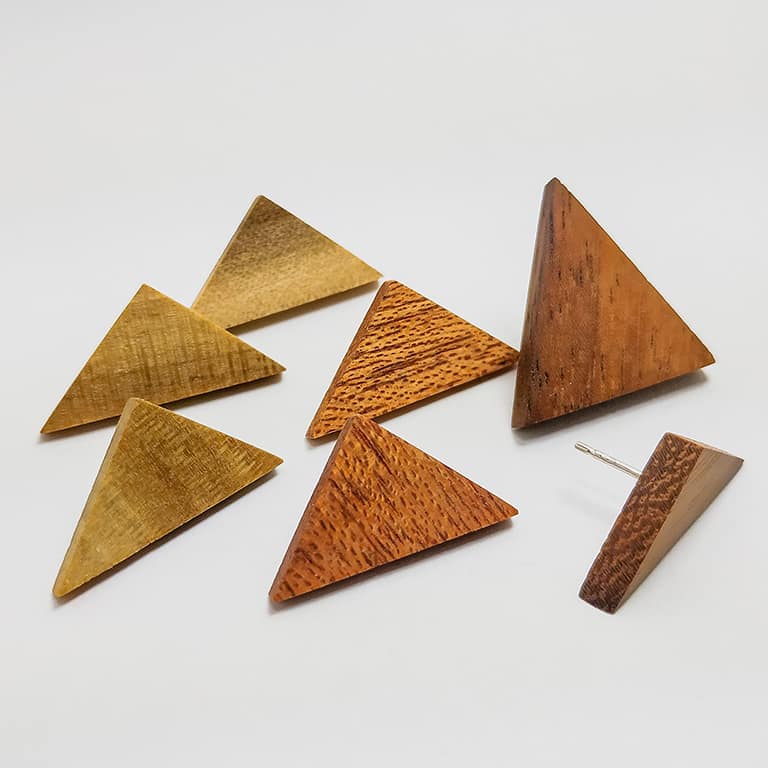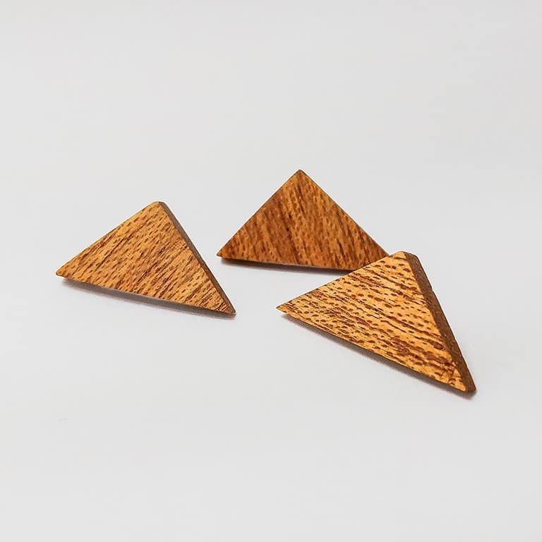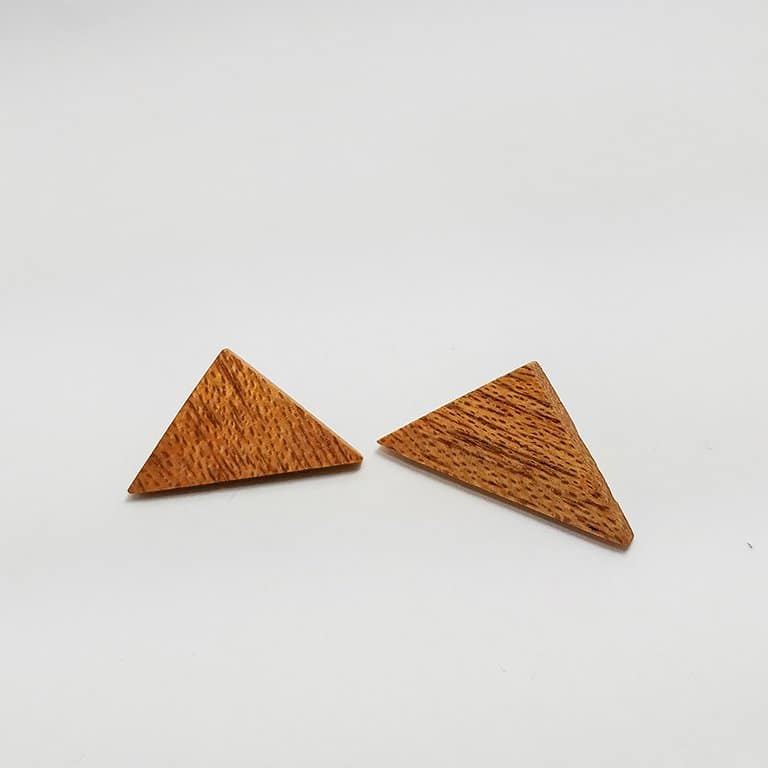 Σκουλαρίκι κουμπωτό τριγωνικό από ξύλο Δρυός (Βελανιδίας), μεχρι 10mm. “Ισοσκελης”.